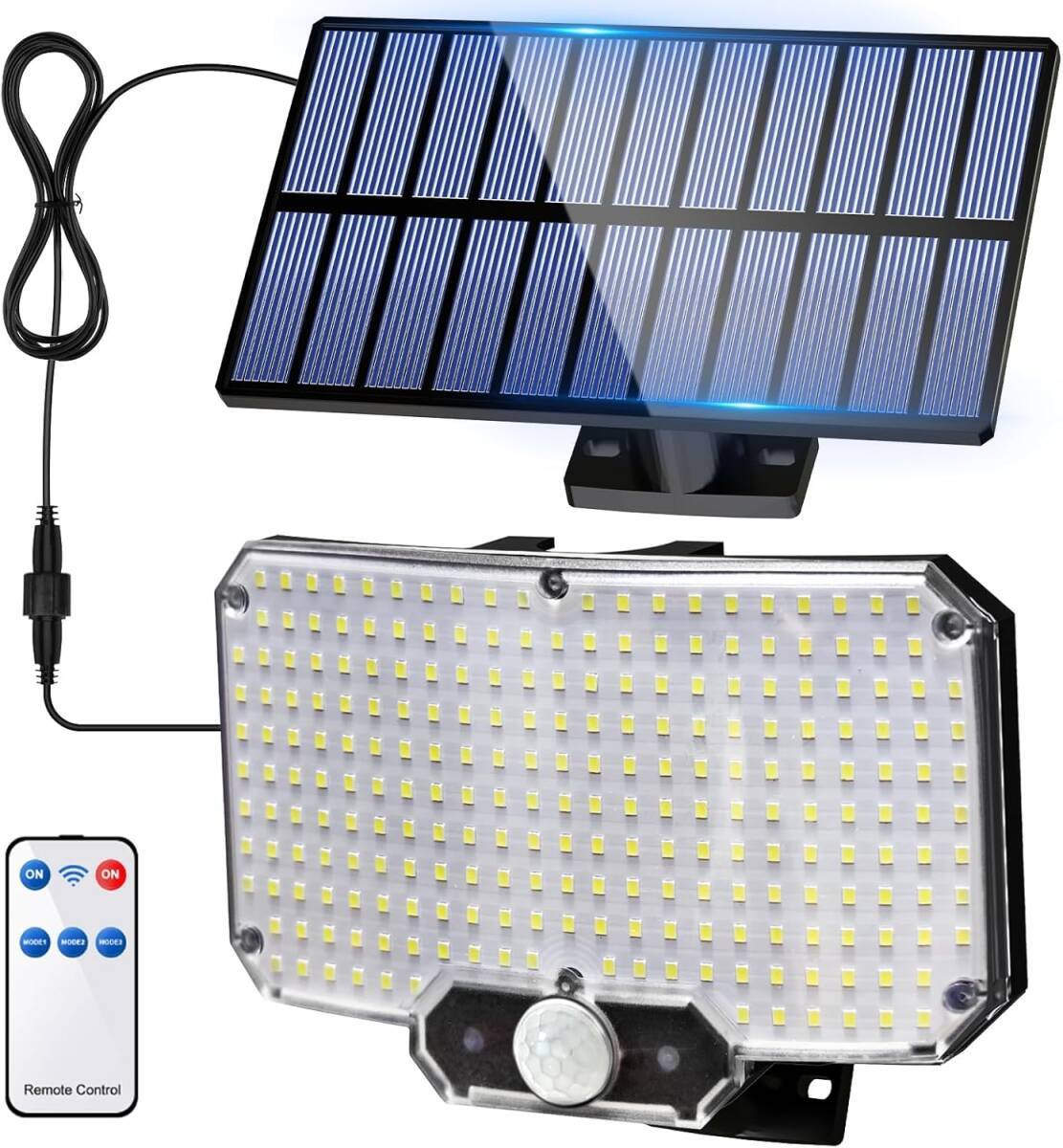 - ソーラーセンサーライト 屋外 234LED リモコン付き 分離型 5M延長コード 人感センサー モード3つ ソーラーライト 自動点灯/消灯 停電時用