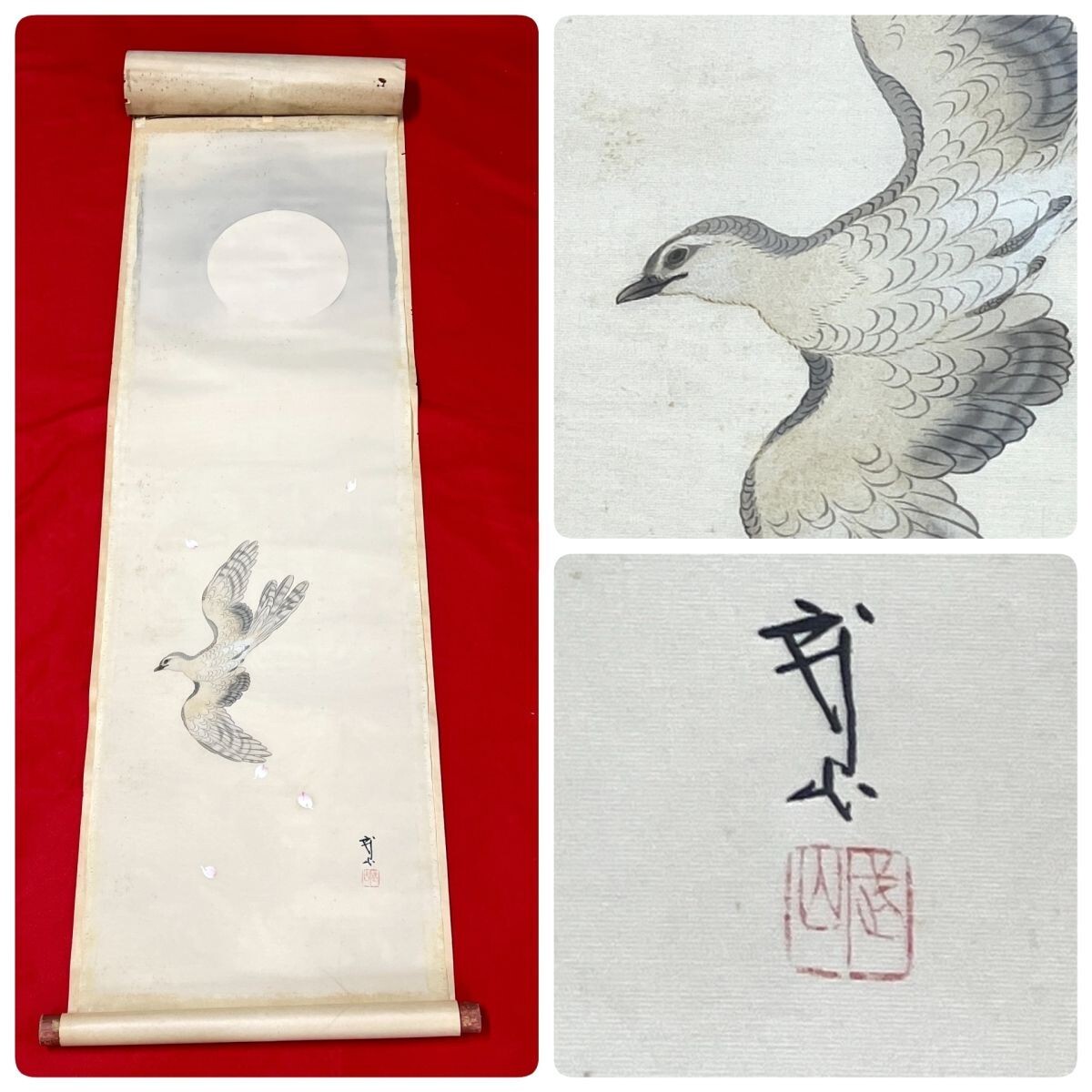- 【R363】真作 木村 武山 絹本 『月下 ほととぎす』時鳥 ホトトギス 掛軸 骨董 古美術 b