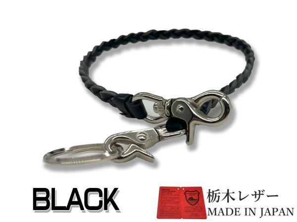 - 新品 栃木レザー メッシュ 編み込み ウォレットチェーン 牛革 日本製 本革 カジュアル メンズ レディース 黒 ブラック one058-BLACK