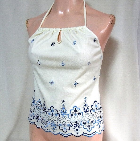 - ★☆紺ブルー花刺繍入り白タンキニ水着の上☆★