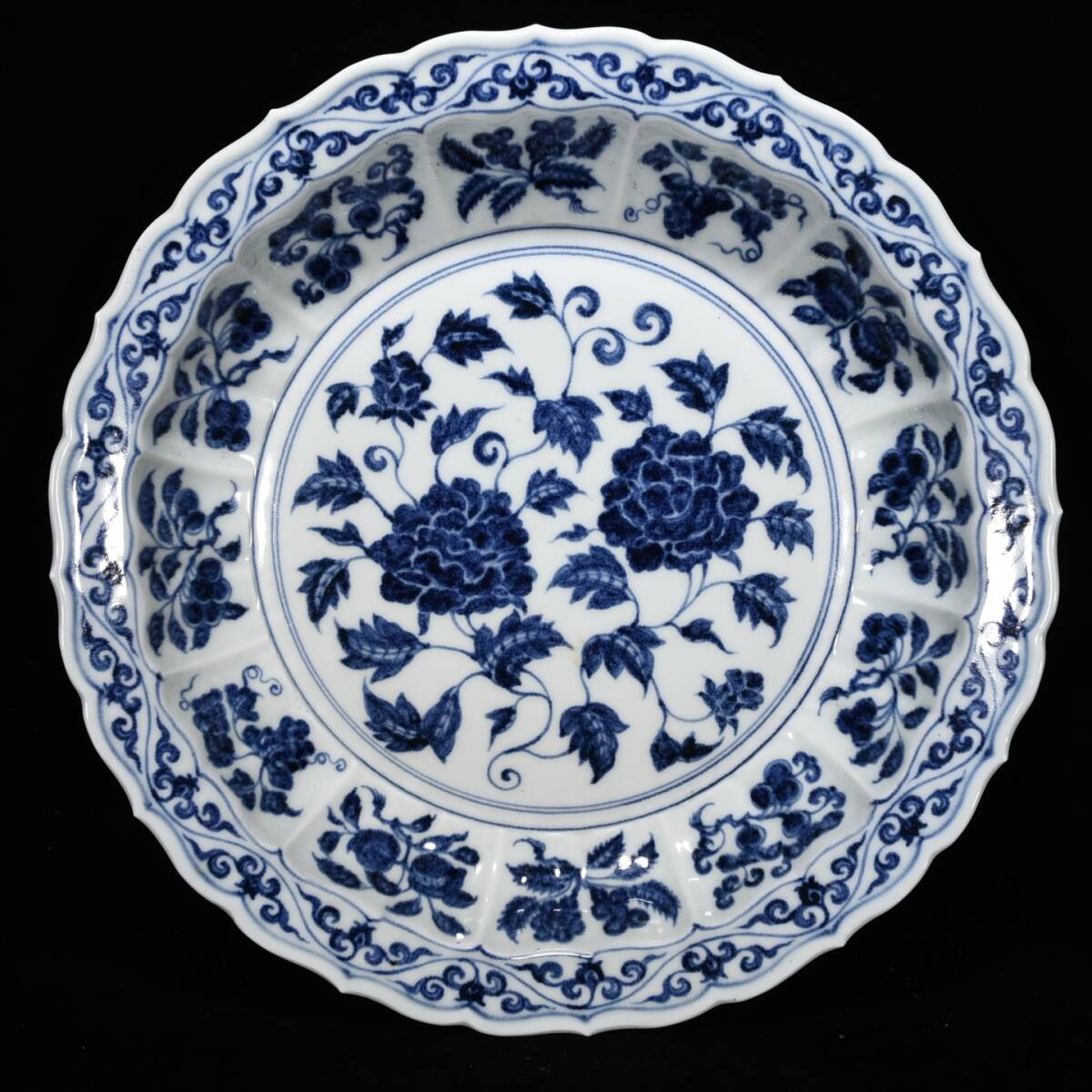 - ◆珍蔵◆中国古美術 大明宣徳年製款 青花 古陶磁 纏枝蓮花口大盤 精品 細密細工造 置物 擺件 骨董品 古賞物 時代物