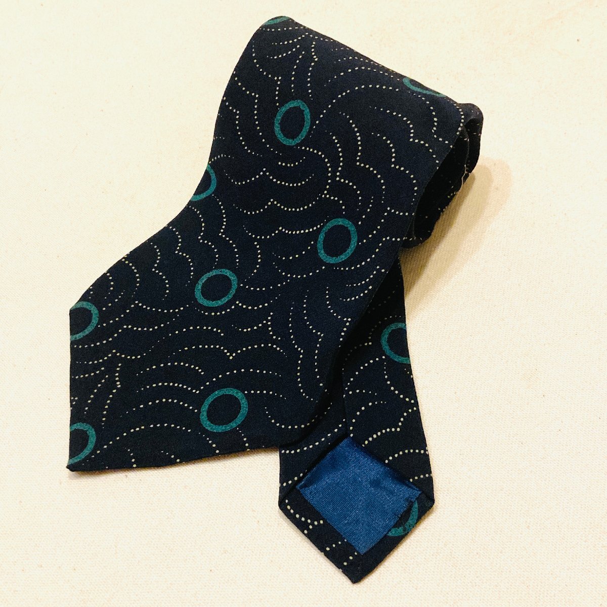> GIORGIO ARMANI ジョルジオアルマーニ イタリア製 絹 シルク SILK 100% 高級 ネクタイ ネイビー系 アート 総柄