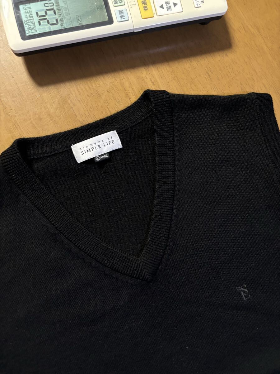 - element of SIMPLE LIFE ㈱レナウン 毛100% Vネック黒ニットベスト