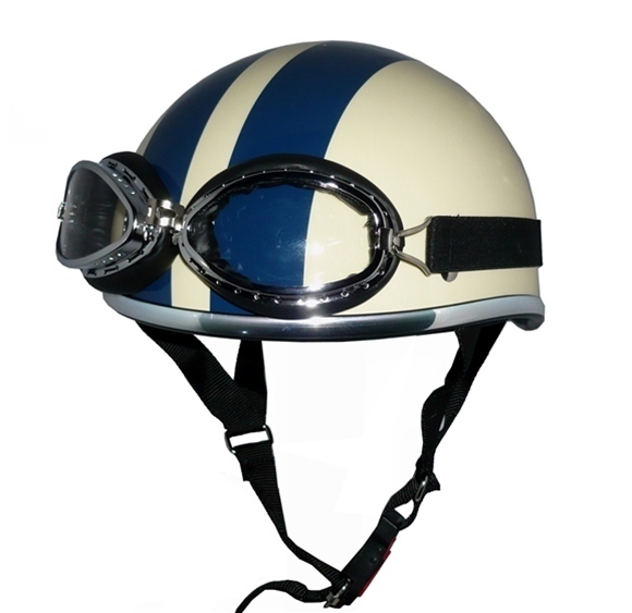 - 新品 ZK-120 ダックテール(アイボリー/ネイビー)メッキモール 装飾ゴーグル付き SG公認 125ccまで サイズ調整スポンジ付き S~L調整可