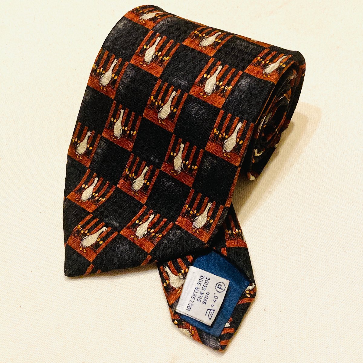 > GIVENCHY PARIS ジバンシー イタリア製 絹 シルク SILK 100% 高級 ネクタイ ブラック/ボルドー系 鳥 モチーフ 総柄
