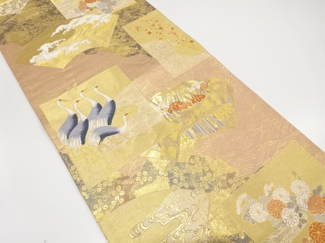 > 美品 西陣舞鶴製 純金箔 扇面集紋織り出し 袋帯 (IBE3K-002)