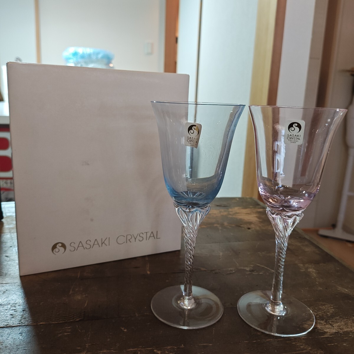- 92913 日本古風堂 【未使用品】SASAKI CRISTAL ペアグラス ワイングラス