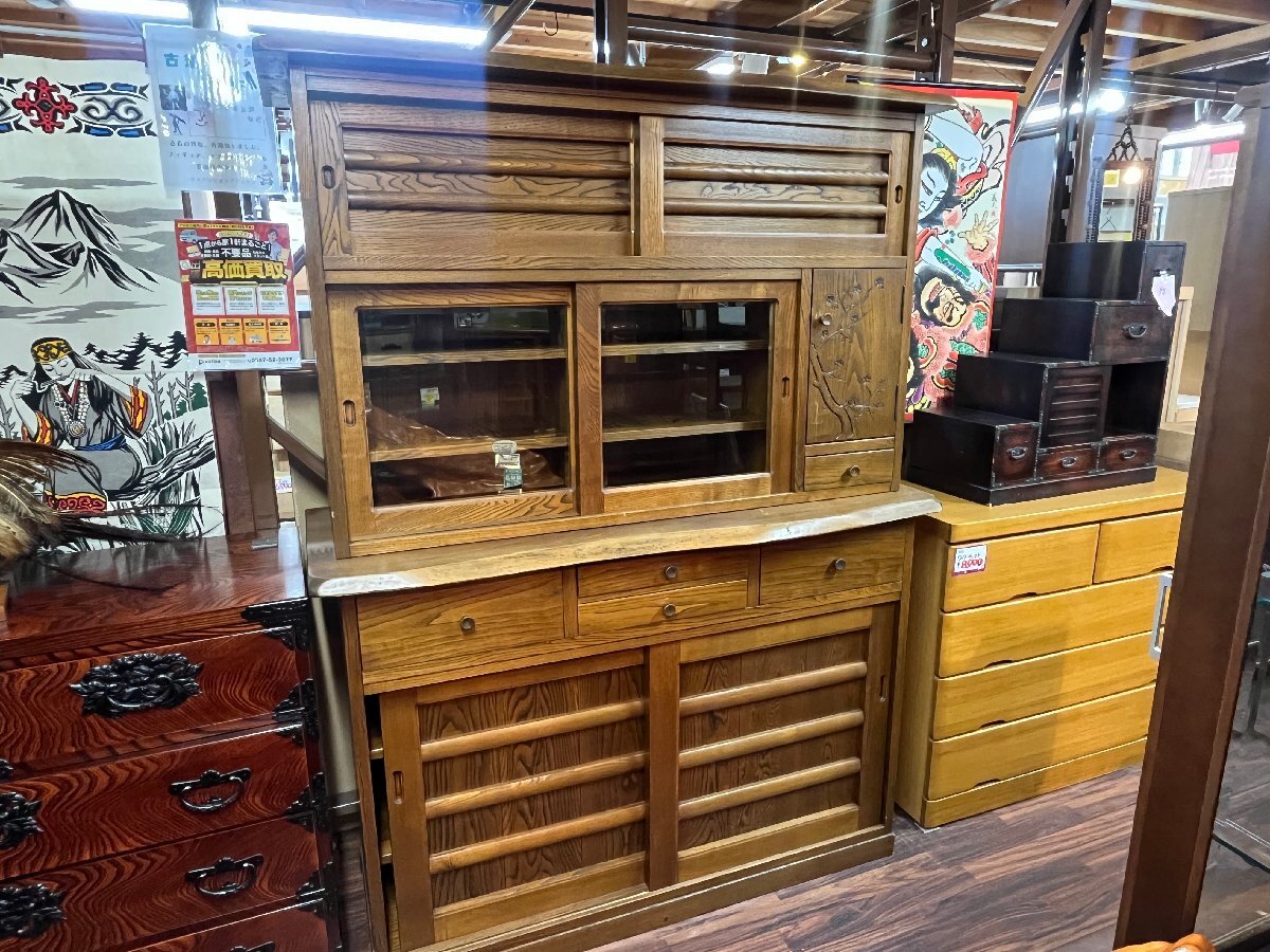 ・アンティーク 和風 水屋箪笥 食器棚 飾り棚 古民具 収納棚 和家具 引出し ガラス窓