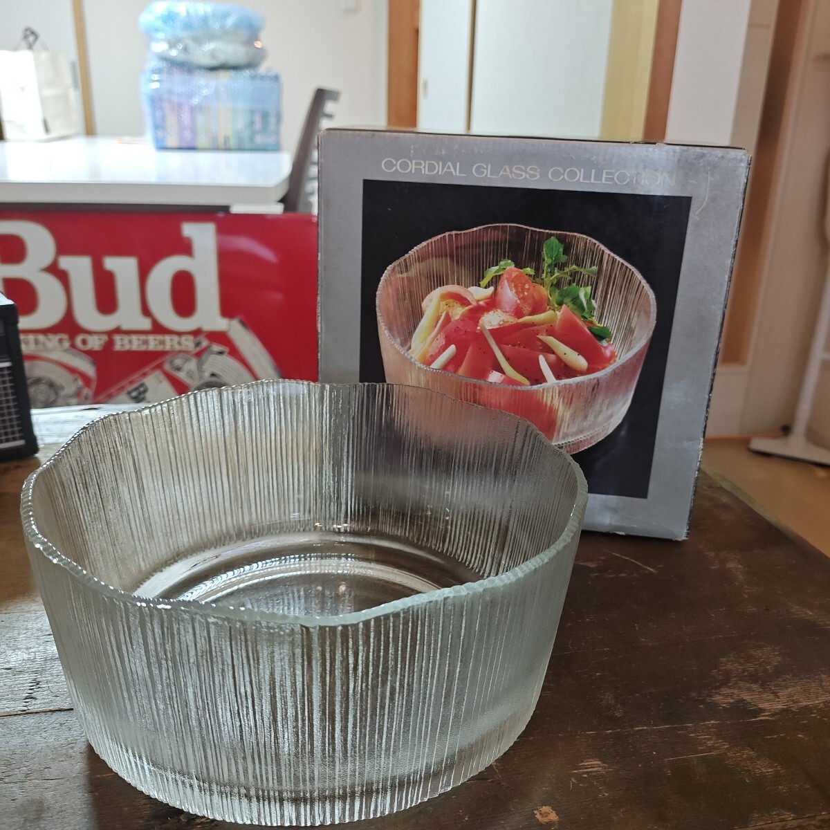 - 92612 日本古風堂 HOYA フルーツボウル ガラスボウル 保谷硝子 サラダボウル 盛鉢 ストライプ レトロ 未使用 約20cm