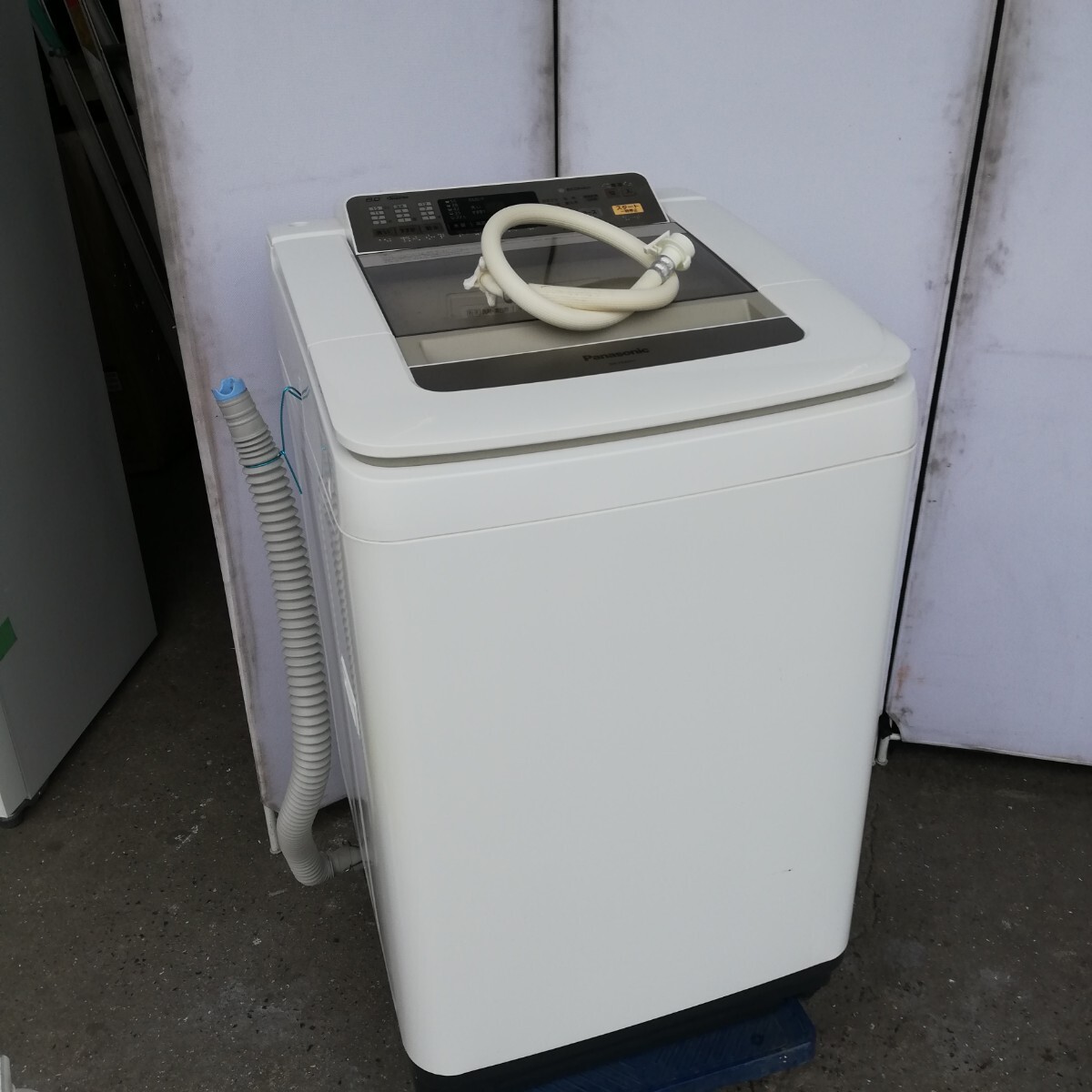 - 管19( 動作確認、中古現状、東大阪市渋川町引取大歓迎) 8.0㎏ パナソニック Panasonic 全自動電気洗濯機 NA-FA80H1 ホース付 白色