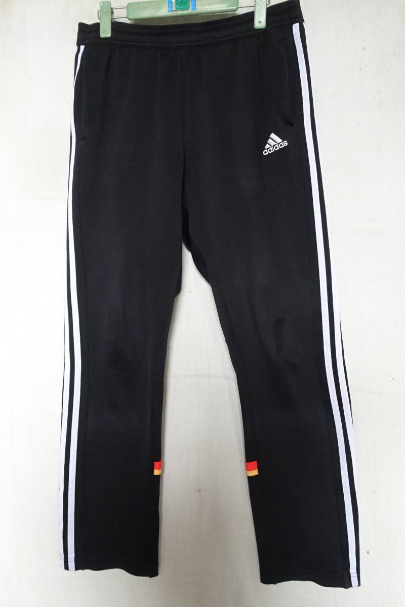 > adidas/アディダス/トラック長パンツ/ジャージ素材/脇白3本ラインテープ/ひざ裏赤黄ラインテープ/スポーツ/黒/ブラック/Lサイズ(9/26R7)