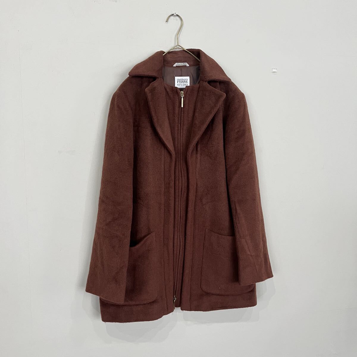 > GIANFRANCO FERRE STUDIO ジャンフランコ・フェレ ストゥディオ イタリア製 モヘア混 バージンウール ハーフコート レディース コート zip