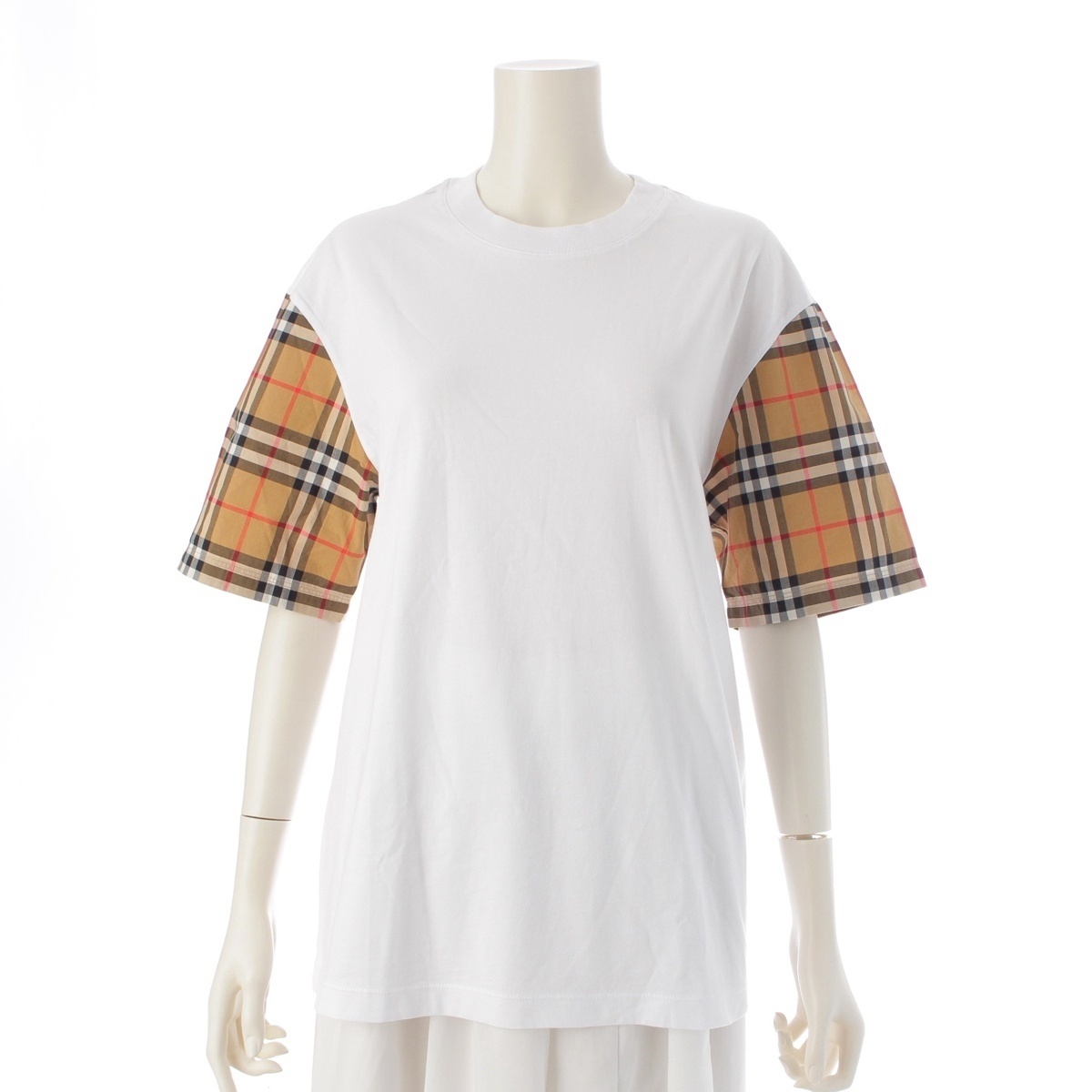 - バーバリー コットン チェック 半袖Tシャツ ホワイト ブラウン XS【中古】