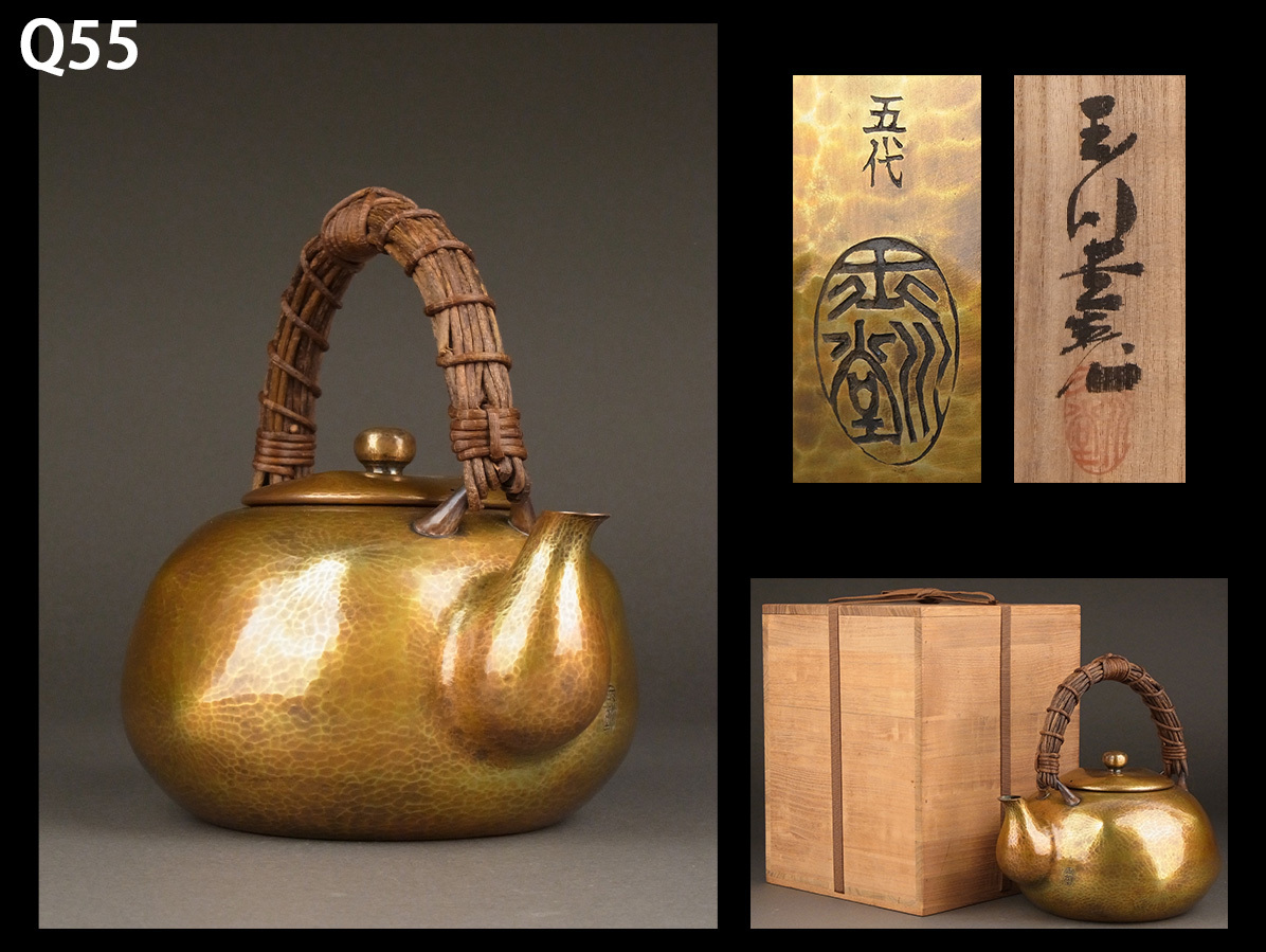 > Q55☆時代煎茶道具 玉川堂 五代 (覚平)口打出 鎚起銅製 湯沸 共箱 総重量約1,110g/水注 銅瓶 薬缶 急須 金工