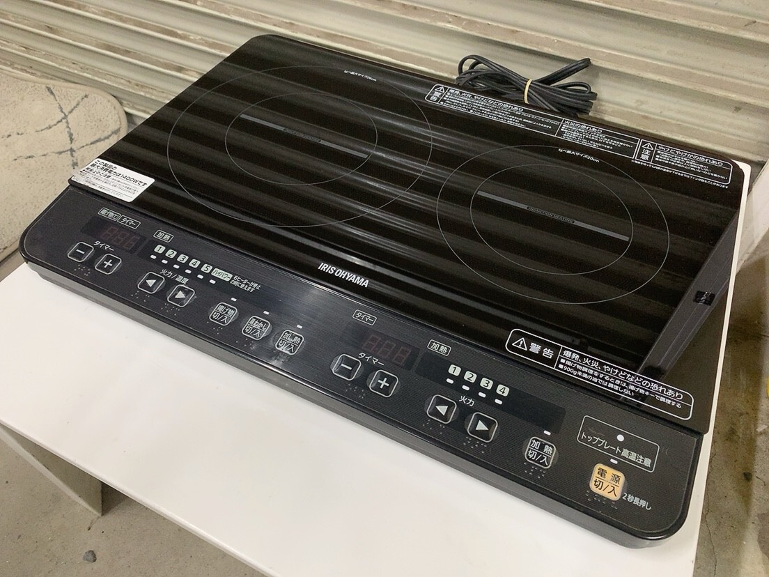 - 中古 IRIS OHYAMA アイリスオーヤマ 2口IHコンロ IHK-W1-B 2016年製 IHクッキングヒーター IHヒーター 100V ブラック 黒 0923や1 B1 120