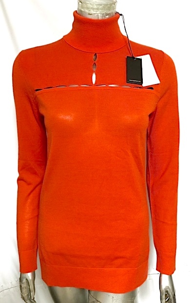 > ☆二点落札で送料無料!2A62【未使用/タグ付】 BOSS ヒューゴボス 最高級 ウール タートルネック ニット セーター XS オレンジ レディース