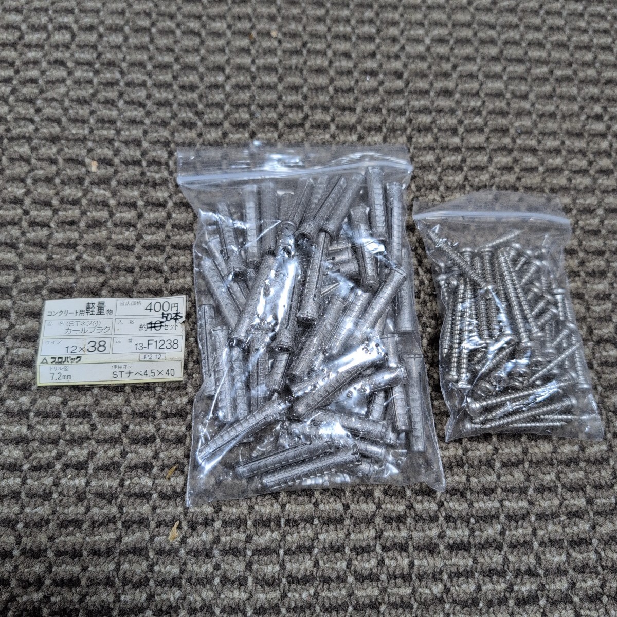 > ジャンク品/長期保管品/WAKAI/若井産業/CARL/カールプラグ/13-F1238/#12×38mm/ドリル径7.2mm/使用ネジ:STナベ4.5×40mm/1P50本入り