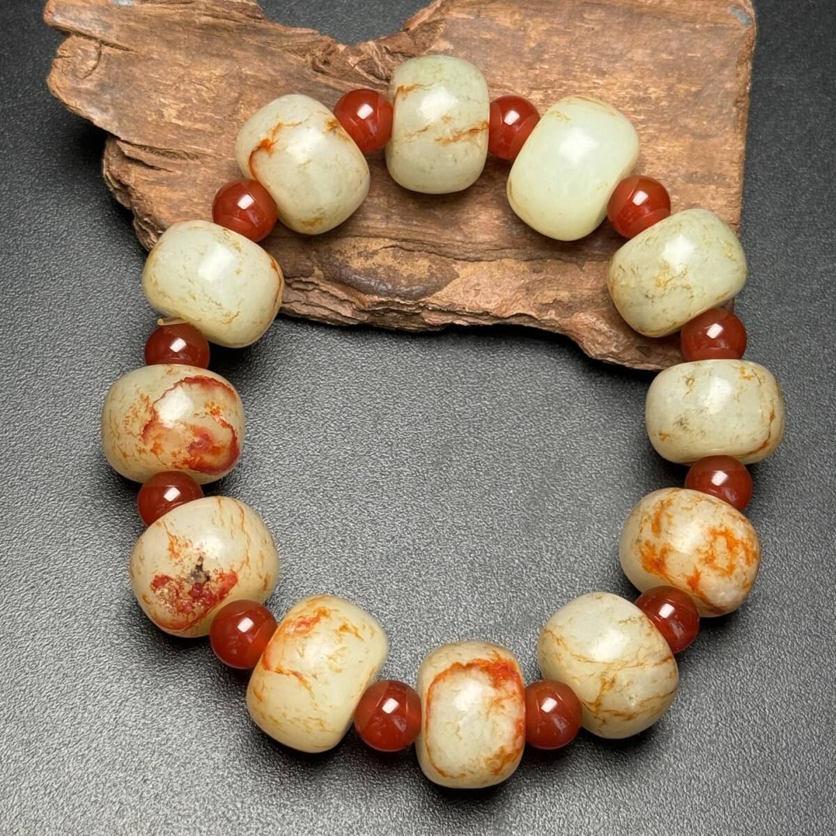- ▽鴻▽ 清時代 和田玉製 細密彫 手串 置物 賞物 古賞物 古董品 時代物 稀少珍品 中国古玩 中国古美術
