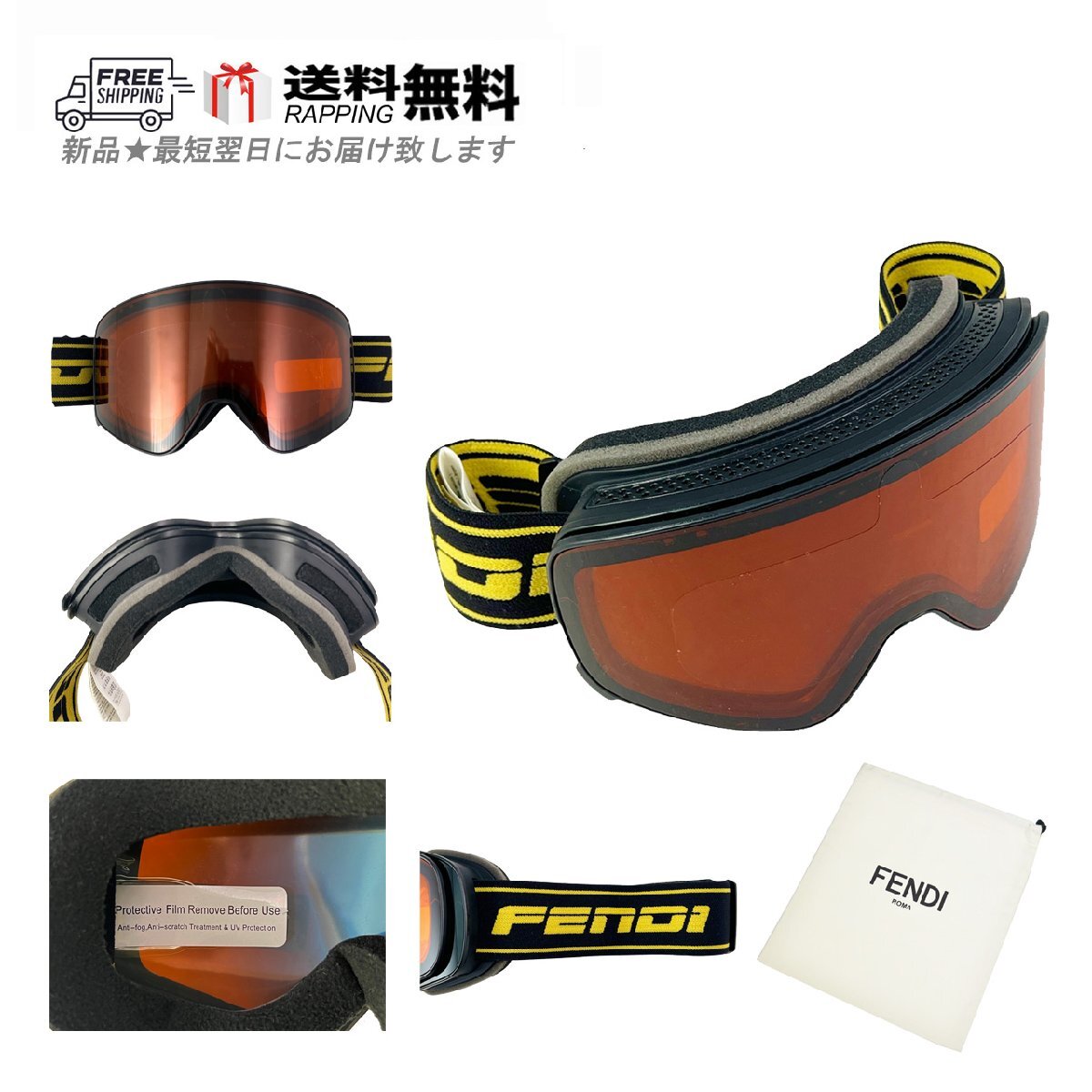 > I784.. FENDI フェンディ スキーゴーグル ロゴ イタリア製 FAH032 AEQR F1COQ ★ オレンジ