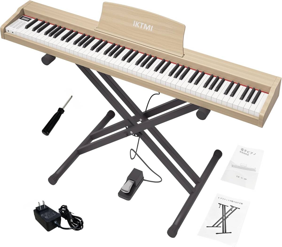 - オークベージュ色 IKTMI 電子ピアノ 88鍵盤 木製 電子ピアノスタンドセット 携帯 Piano MIDI対応 ポータブルピアノ