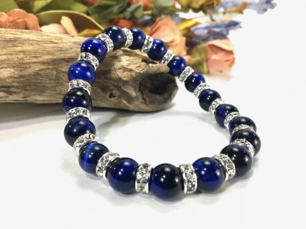 - ブルータイガーアイ パワーストーン ブレスレット 10mm メンズ・レディース (ロンデル:シルバー) 開運 浄化 数珠ブレス♪