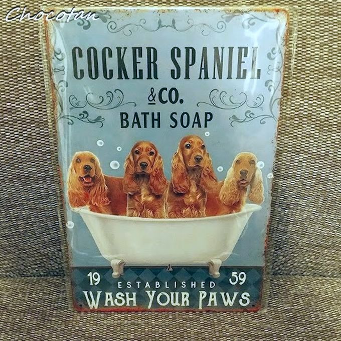 - 【送料無料】コッカースパニエル 4匹 ⑦ バスソープ メタルサインプレート【新品】
