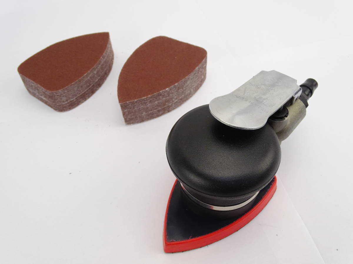 - 売り切り 未使用 三角形!70X900mmエアーオービタルサンダー 非吸塵式 空気圧調整式 軽量710gハンディタイプ #80 サンドペーパー50枚付