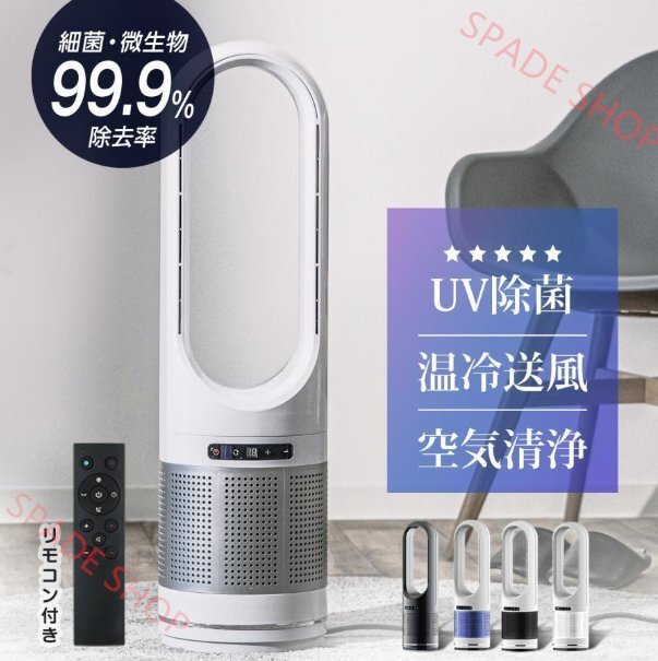 > 冷暖両用★46インチ 空気清浄機 タワーファン 羽なし UV除菌 冷暖房機 置き型 風量8段階 自動首振り ファンヒーター リモコン付き 冷暖切替
