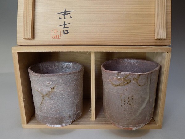 - ★os91★唐津焼 小川末吉 絵唐津湯呑2客★