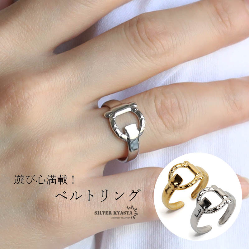 > (シルバー) ベルトリング ゴールドリング ホースシュー 指輪 18KGP ゴールド ステンレス 馬蹄 レディース アレルギー対応