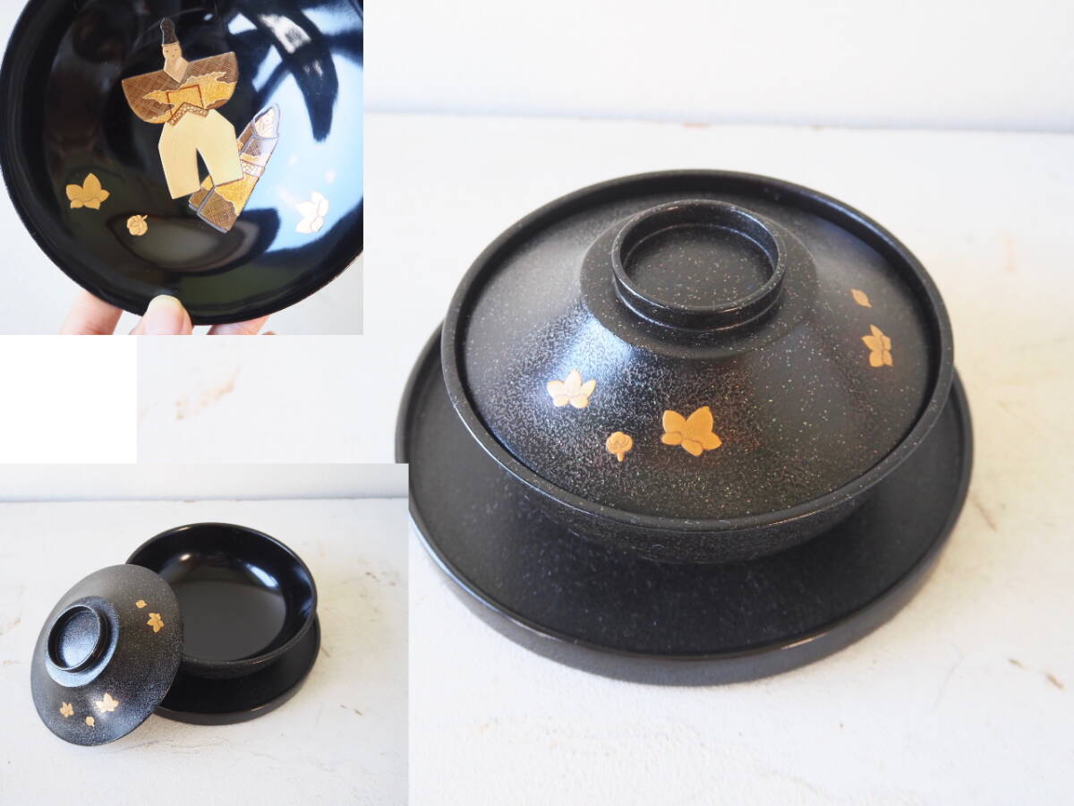 - 【OAN】漆芸 金蒔絵 雛人形文 菓子椀 丸盆付 骨董 古美術 古道具 民藝 古民藝 茶道具 懐石 古玩 菓子器 蓋付椀 雛蒔絵