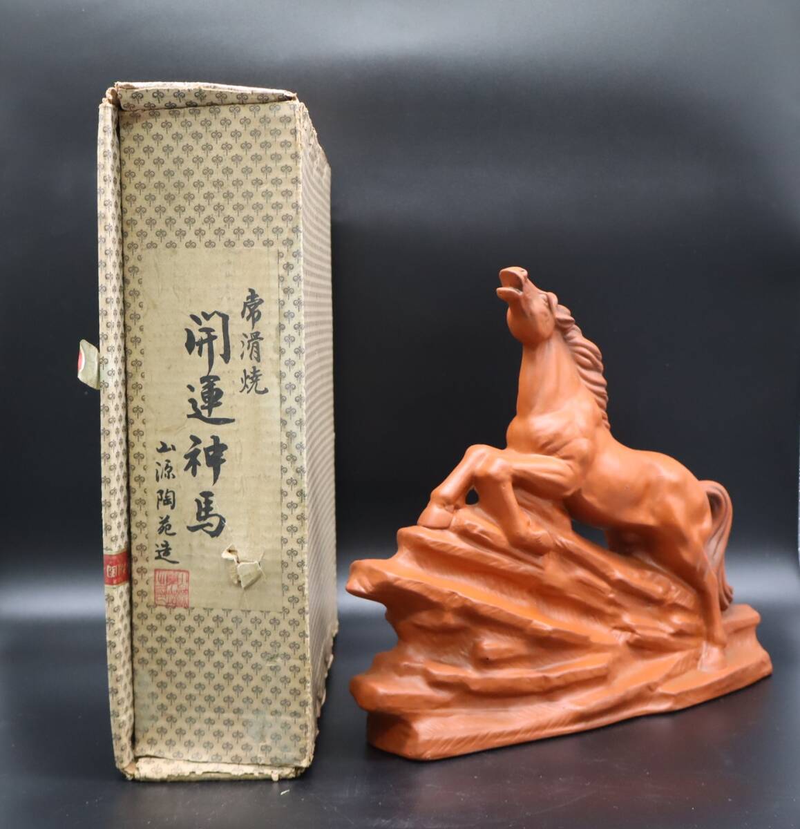 > ◆幅 31㎝×高さ26㎝ |開運神馬 陶器製|常滑焼 山源陶苑造 |開運・縁起物・競馬・ダービー ■P0677