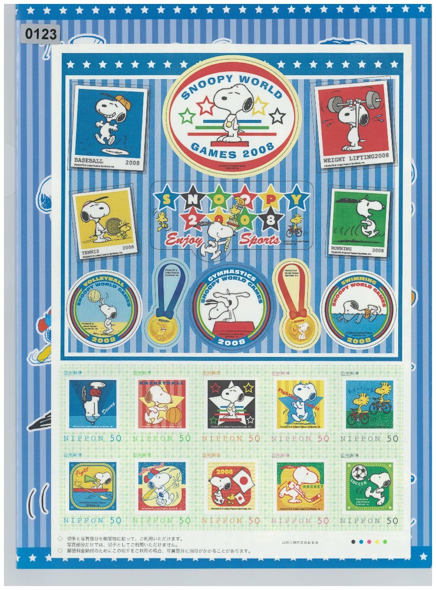 ●0123 フレーム切手 スヌーピー 2008 50円×10枚 台紙付 シール・プレミアム記念切手 〒3