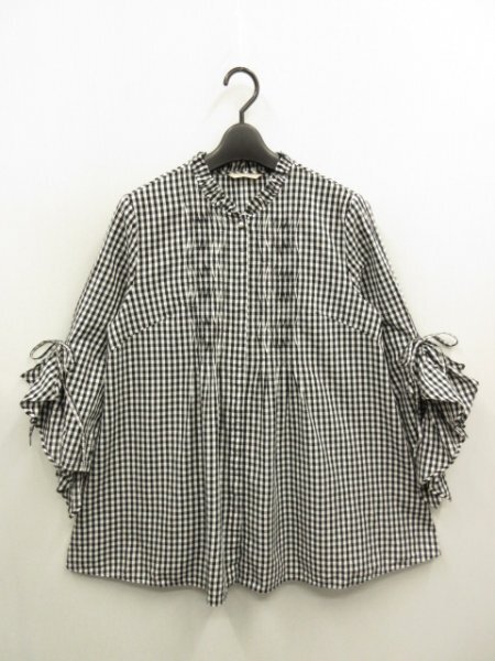 > 25年 ローズティアラ Rose Tiara ★ 定価¥24200税込) 洗える ギャザー ギンガム チェック 7分袖 ブラウス ★ サイズ38