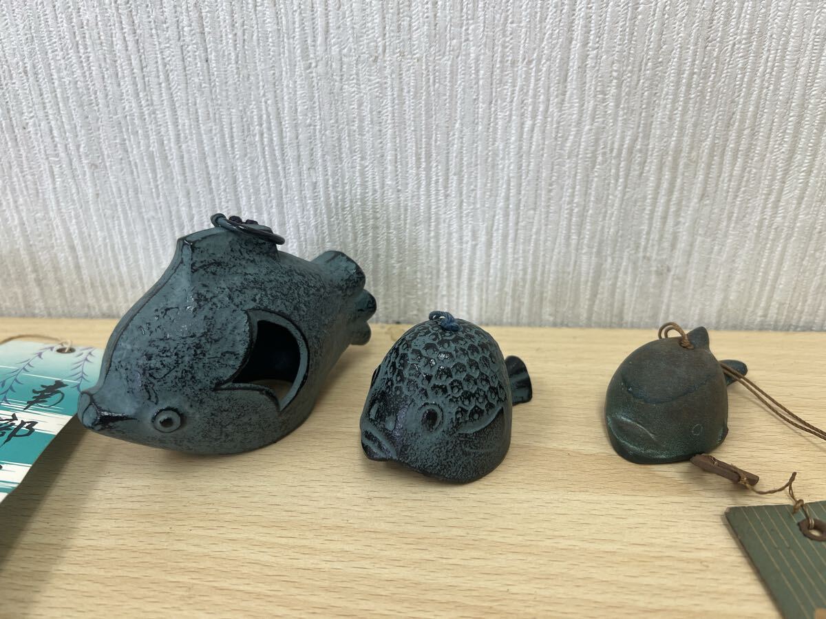 - 【ヤ60】③ 風鈴 鐘 南部鉄器 昭和レトロ レトロ 親子フグ クジラ 2個セット 中古品