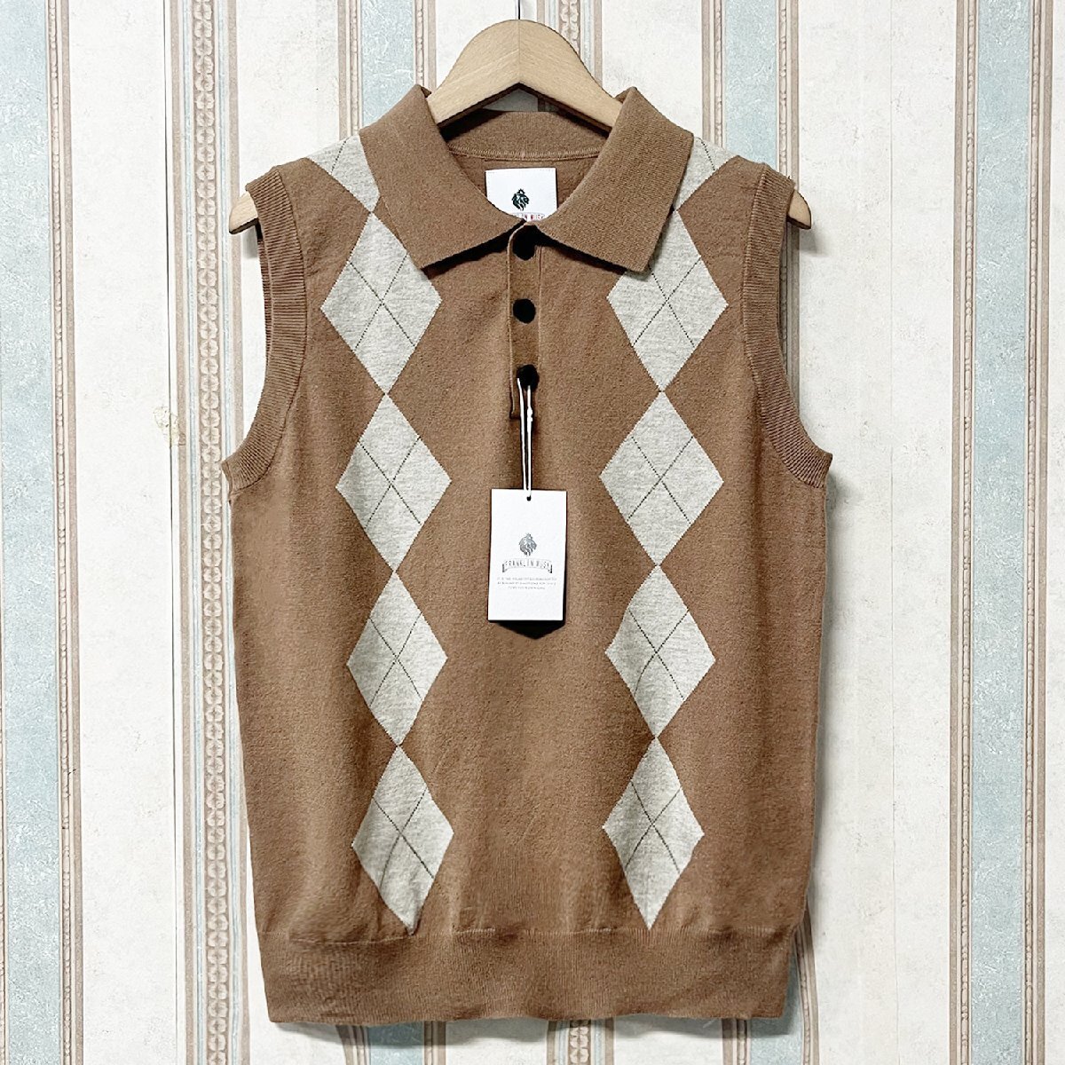 - 絶賛 定価4万 FRANKLIN MUSK・アメリカ・ニューヨーク発 ベスト ニット ウール混 ソフト 折り襟 アーガイル柄 トップス インナー サイズ1