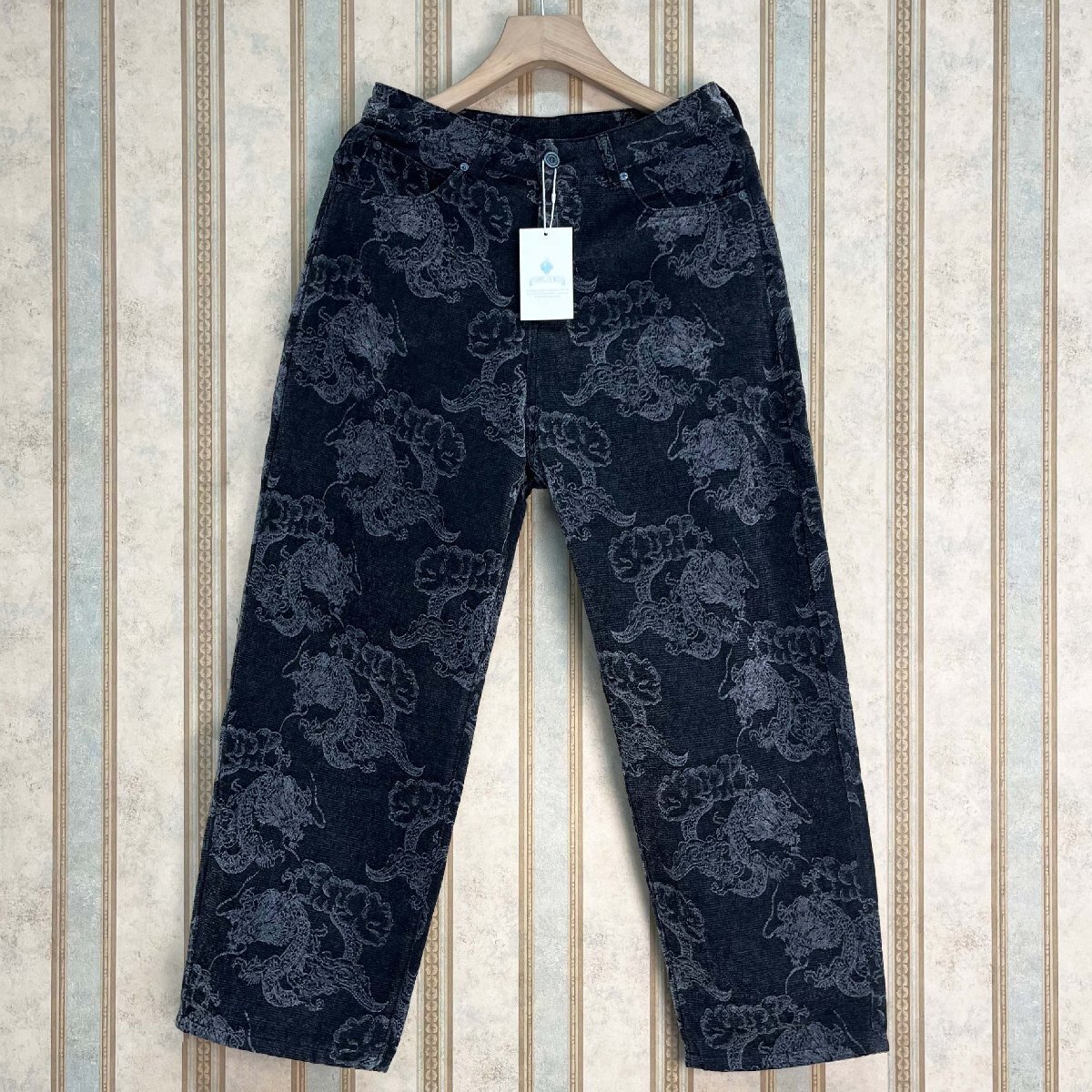 - 個性 定価4万 FRANKLIN MUSK・アメリカ・ニューヨーク発 デニムパンツ ソフト ロング丈 龍柄 総柄 ボトムス ストレート 街着 サイズ30