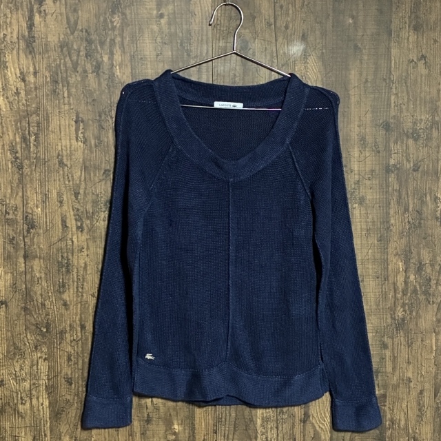 - C36◇LACOSTE | ラコステ Vネックニットプルオーバー ネイビー レディース 34サイズ 中古品