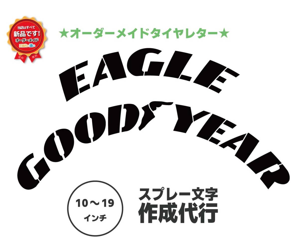「EAGLE GOODEAR でタイヤサイズが225/35/18で、文字高さ4cmで作成願います。。」 等