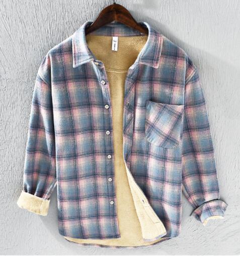 - 新入荷秋冬長袖シャツ 裏起毛 チェック柄 裏ボア ニットブルゾン メンズ 上級 厚手 ジャケット ジャンバー ブルゾン 紳士服 M~3XL
