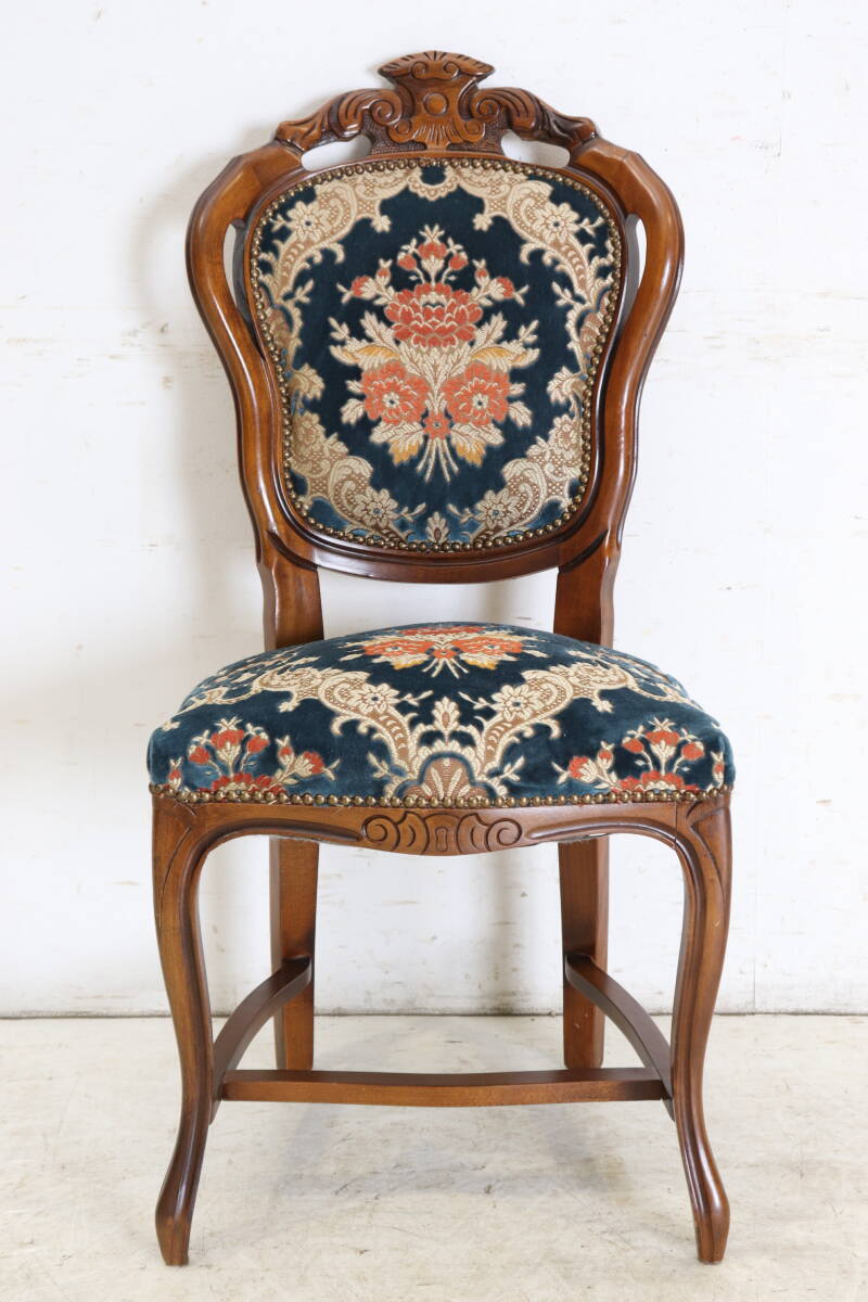 > 【アンティーク様式】 1990年代イタリア製 金華山生地 ダイニングチェア アンティーク調 高級クラシック家具 ヴィンテージチェア 椅子(B)