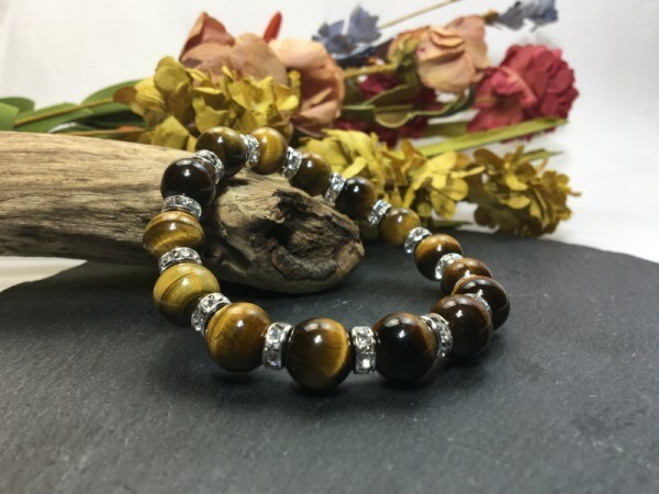 > パワーストーン ブレスレット タイガーアイ 12mm 天然石ブレス シルバー 開運 金運 浄化 数珠ブレス メンズ 男性♪