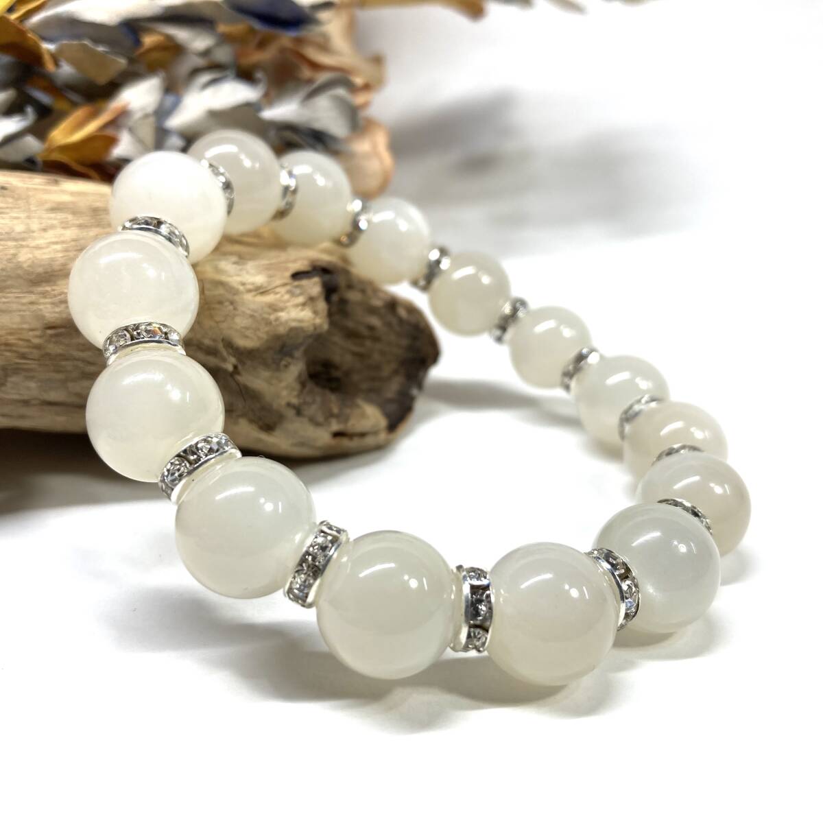 > ムーンストーン パワーストーン ブレスレット 12mm 天然石ブレス (シルバー) 数珠ブレス メンズ・レディース 男性 女性 幸運 開運 浄化♪