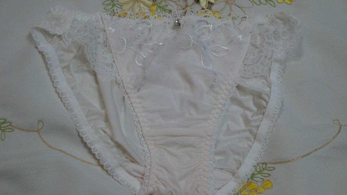 - 新品.ナルエー.Narue.ショーツ.上品フラワー.ラメ刺繍.オーガンジー.ビジュー.白.L