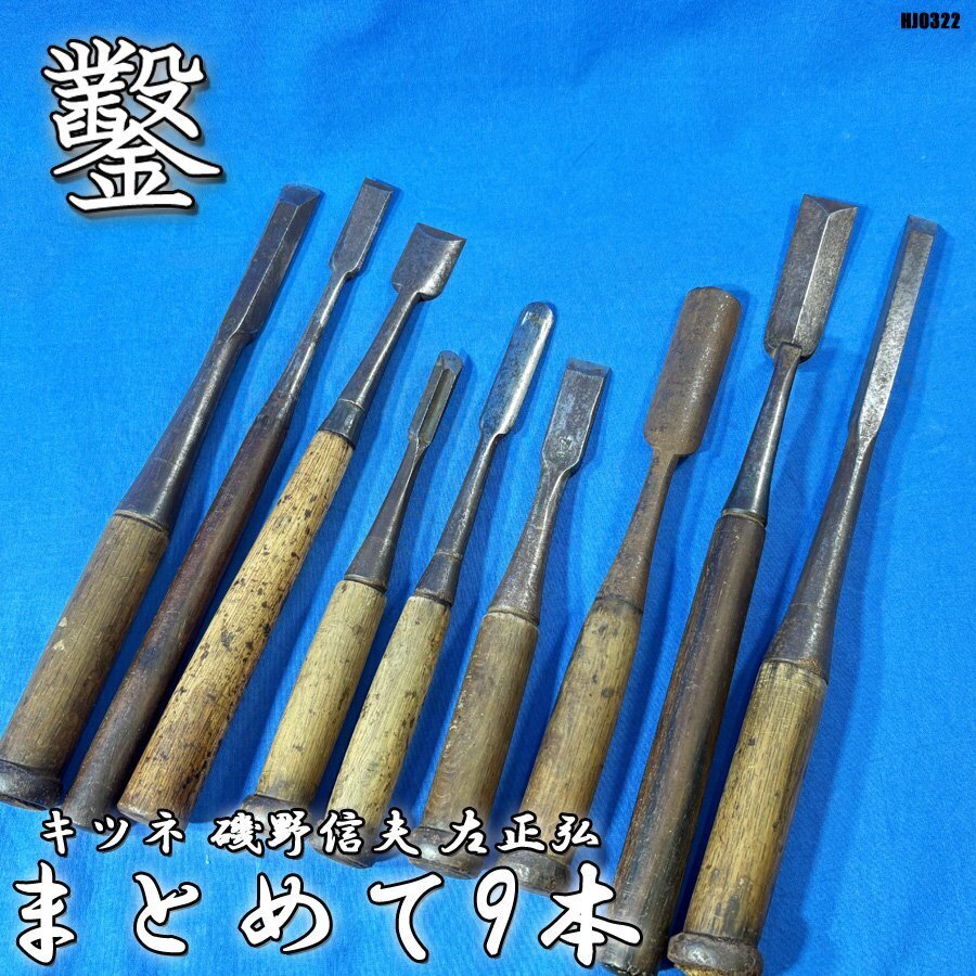 - 鑿 キツネ 磯野信夫 左正弘 等 9本まとめて 刻印 銘あり ノミ 大工道具 在銘 ハンドツール ◇HJ-0322