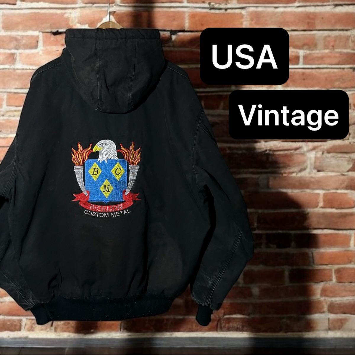 - USA ヴィンテージ アクティブ パーカ フェード ブラック 黒 刺繍 イーグル ダック デトロイト ジャケット walls アメリカ バック プリント