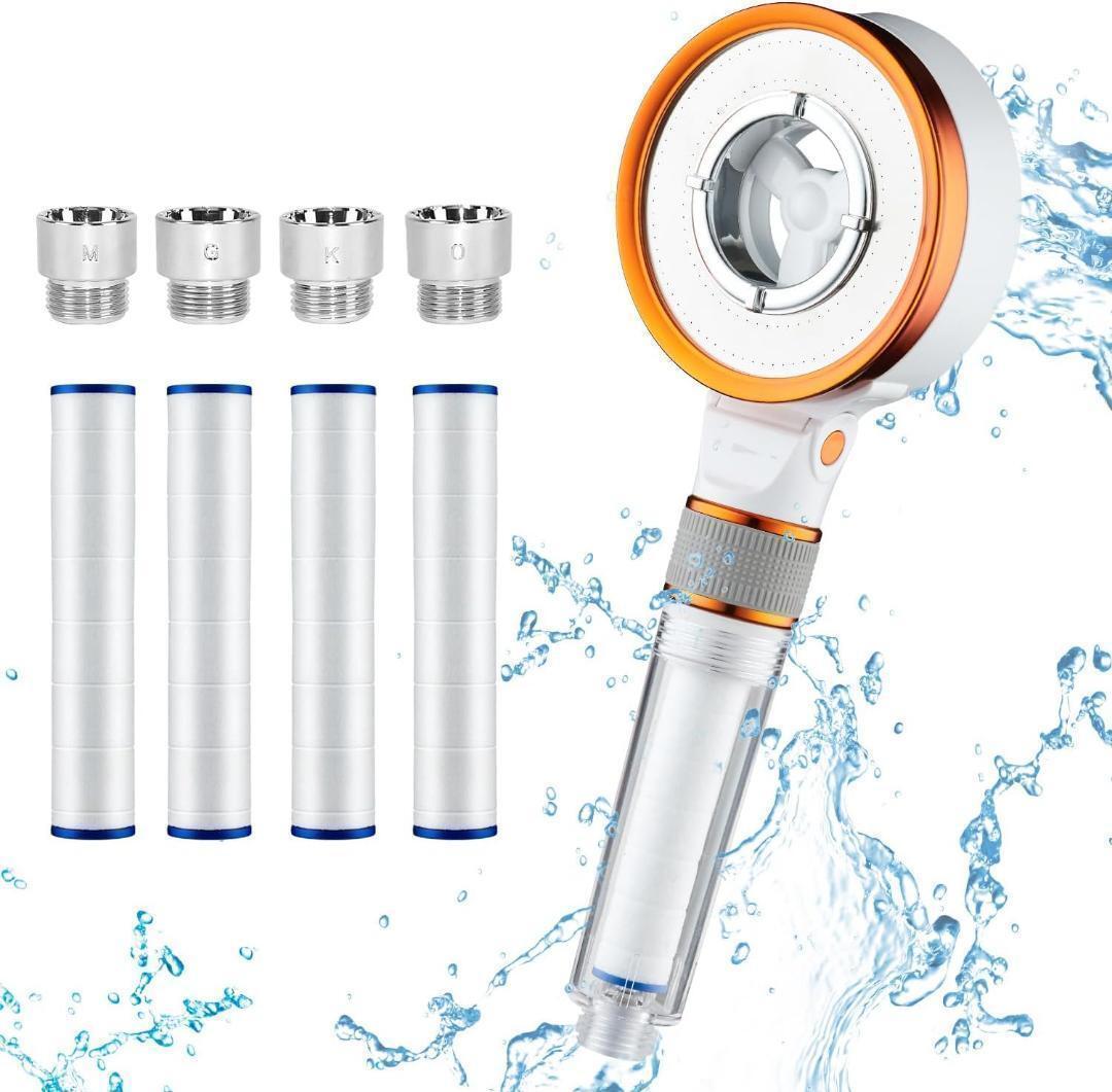 - シャワーヘッド 節水 塩素除去 浄水 4種アダプター 5本フィルター付き