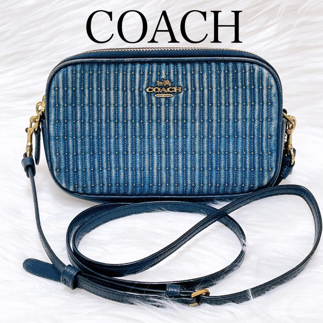 > COACH コーチ 2way デニム ショルダーバッグ スタッズ キルティング