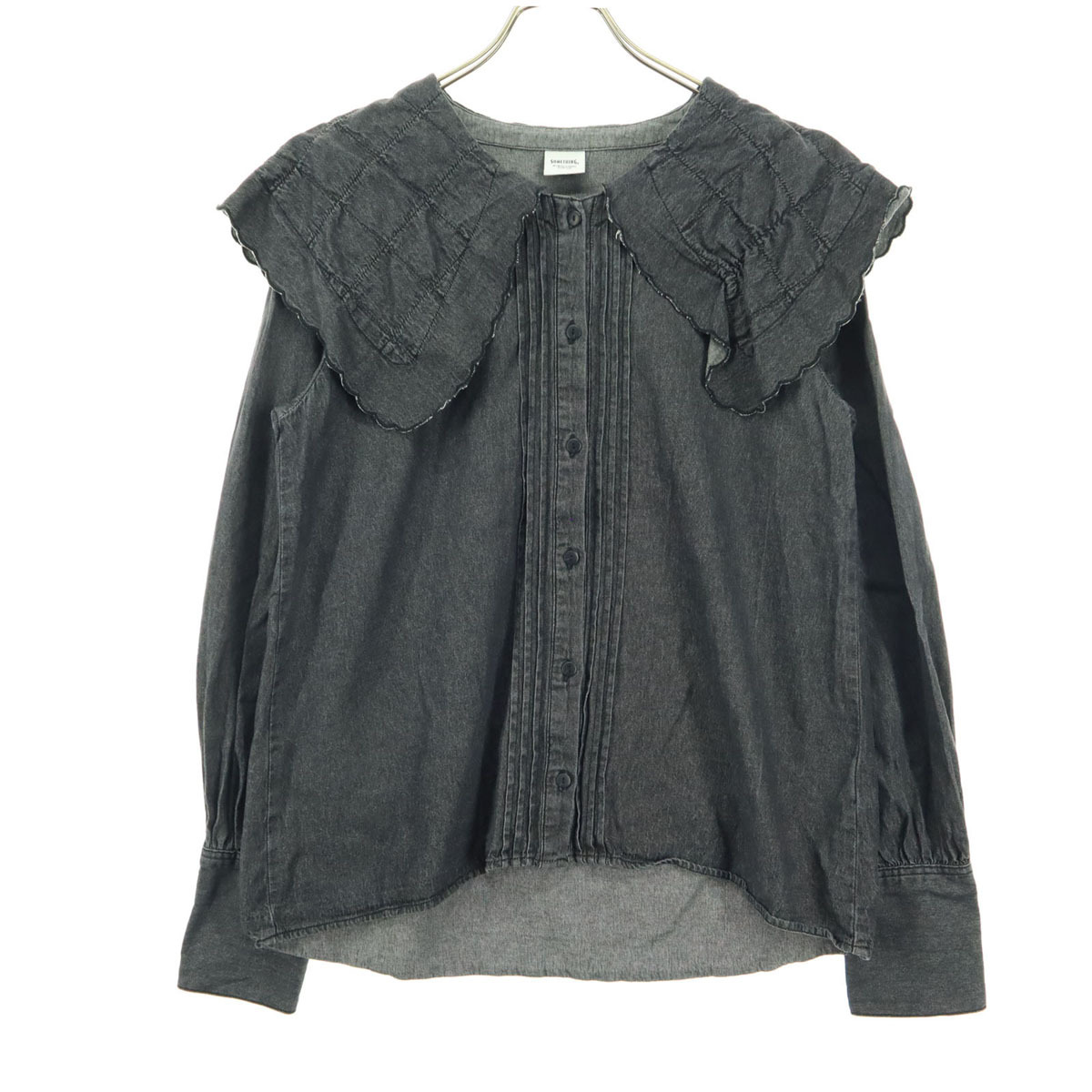 美品 SOMETHING サムシング 長袖 デニムシャツ S グレー セーラーカラー レディース拍卖