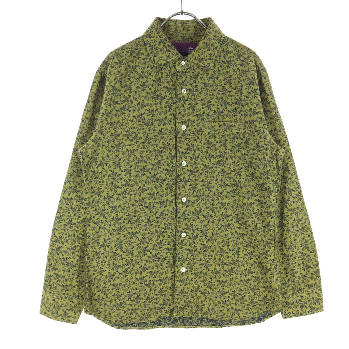 - 美品 monsieur NICOLE ムッシュニコル 花柄 長袖 シャツ 50 イエロー 胸ポケット メンズ
